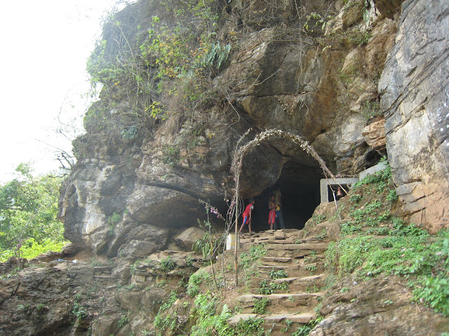 Il fallait se munir d'une forte lampe pour entrer et nous avons fait presque de l'escalade sur d'énormes roches dans le noir,,,, éclairé simplement par la petite lampe frontale de Viviane et la petite torche de MC...