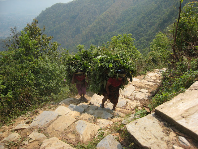 Pour le retour, MC (toujours un peu malade) et moi avons pris un autre chemin qui descendait sur la route puis avons attendu un bus local bondé de monde (il y en avait même sur le toit) tandis que Viviane, la super mamy woman, est repartie par le meme chemin qu'à l'aller.