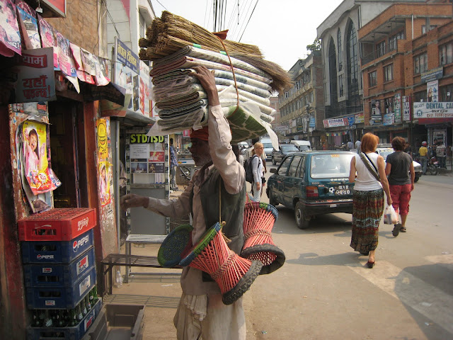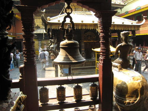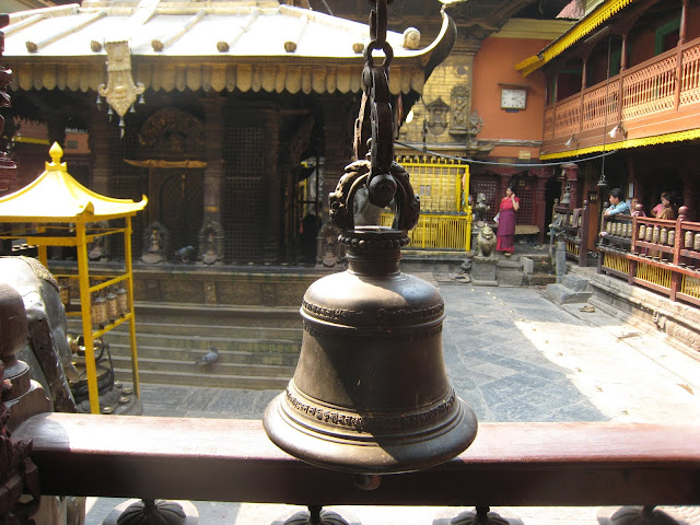 Nous allons donc faire une balade dans Thamel.. une pollution énorme.... Quartier touristique très bruyant et lieu de rendez-vous des adeptes de la montagne. La foule se croise et se fraye un chemin, frôlée par les voitures, les motos, les rickswhaws et les charrettes dans une cacophonie incroyable de Klaxons, se mélangeant au son des cloches...