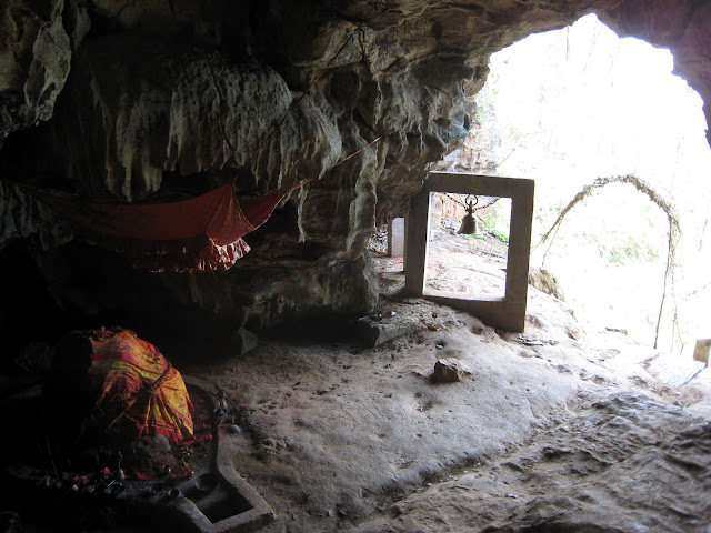 Il fallait se munir d'une forte lampe pour entrer et nous avons fait presque de l'escalade sur d'énormes roches dans le noir,,,, éclairé simplement par la petite lampe frontale de Viviane et la petite torche de MC...
