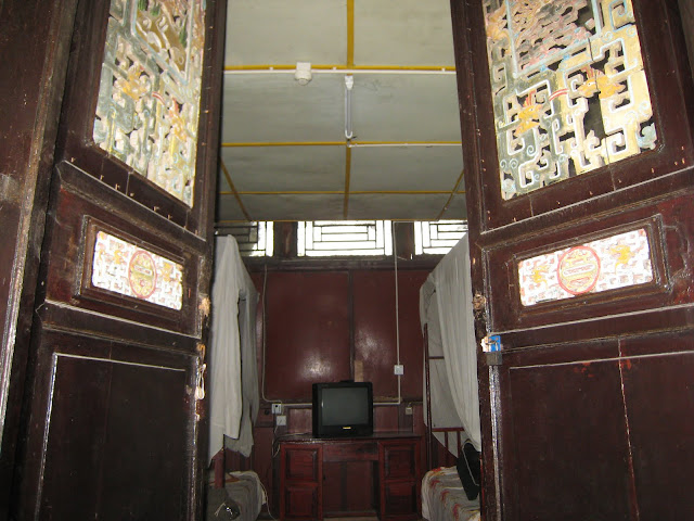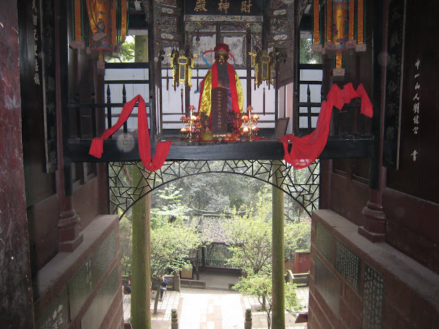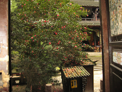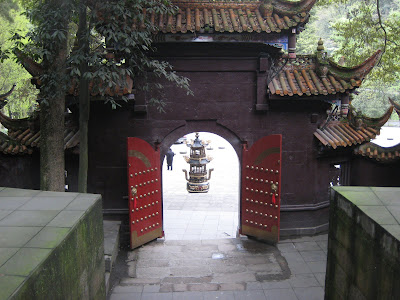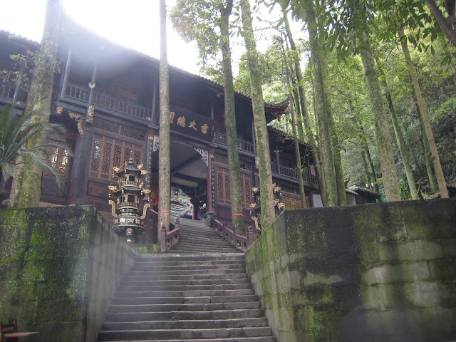 voilà l'endroit où on va stopper pour dormir ... SHANG QING GONG (« Palais de la pureté suprême »), construit au Xe siècle sous la dynastie des Jing. Ce palais conserve le texte original, gravé sur bois, du Tao Te King de Lao Zi, le fondateur spirituel du Taoïsme. C’est le lieu le plus élevé de la montagne, à 1 200 mètres.